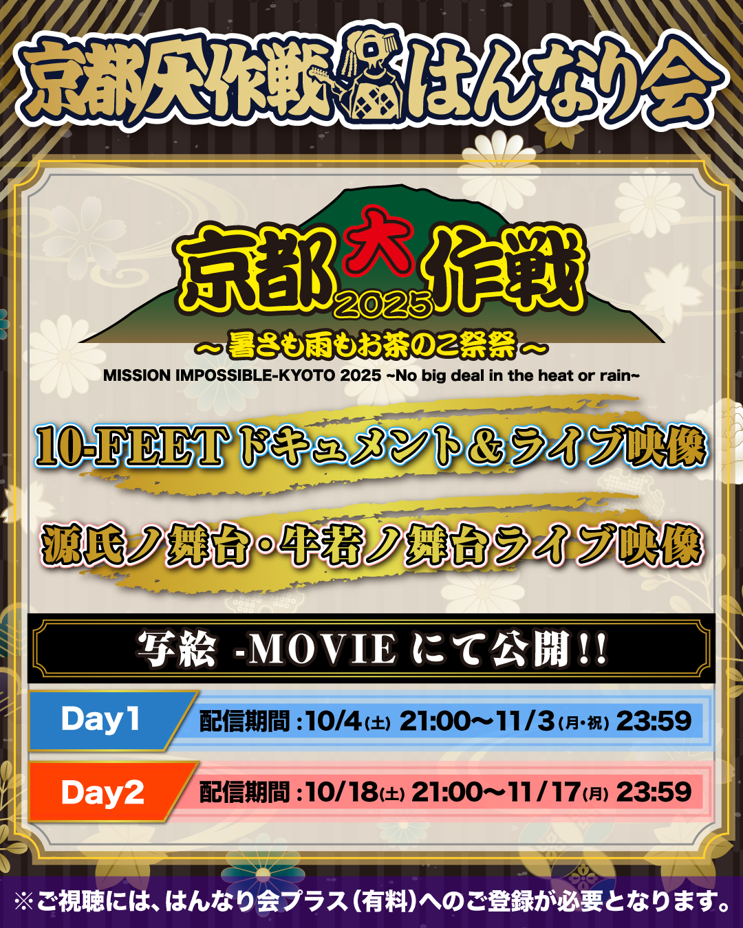 京都大作戦2025〜暑さも雨もお茶のこ祭祭〜【はんなり会プラス限定!】10-FEETドキュメント&源氏ノ舞台・牛若ノ舞台のライブ映像を配信!